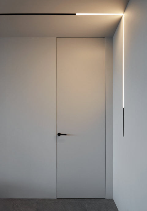 Skillnaden mellan en standarddörr och en innerdörr i full takhöjd märks direkt. Rummet upplevs högre, känslan av rymd förstärks och helheten mer harmonisk. Genom att låta dörren möta taket skapas en obruten linje som förlänger arkitekturen och binder samman rummens proportioner.