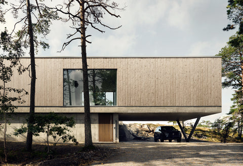 "Vi lade mycket tid på husets placering, och det är något vi är väldigt nöjda med. Kontrasten mellan den naturliga skogen och det strama huset av betong och trä skapar en vacker balans."