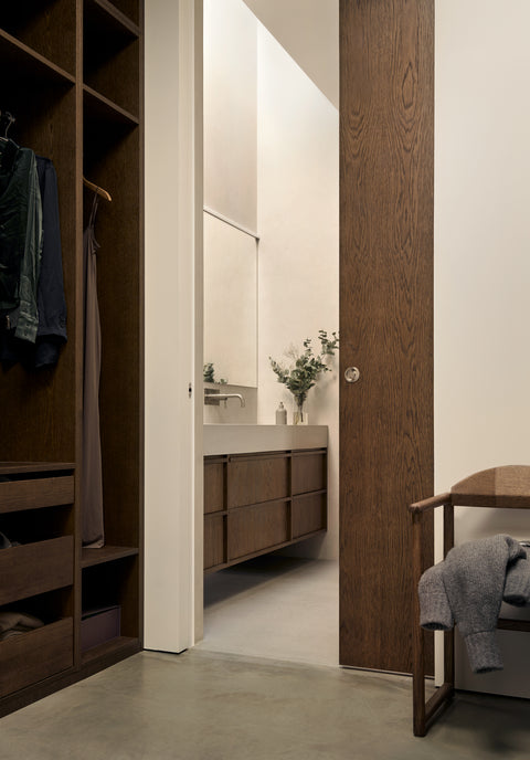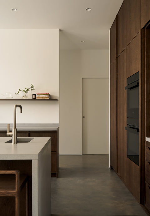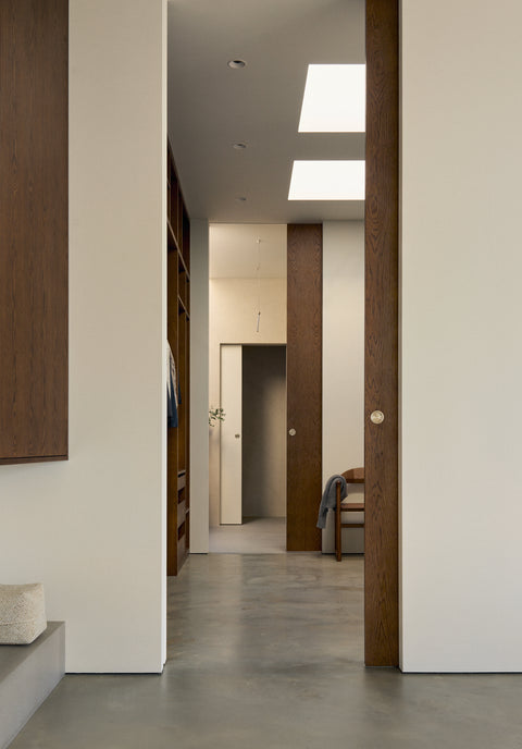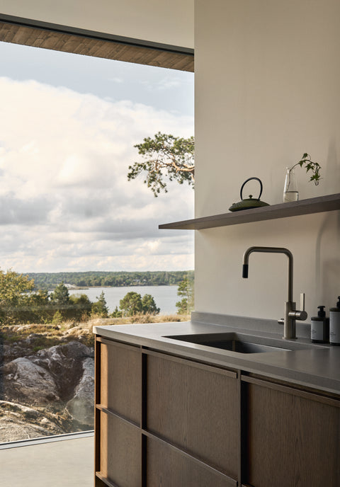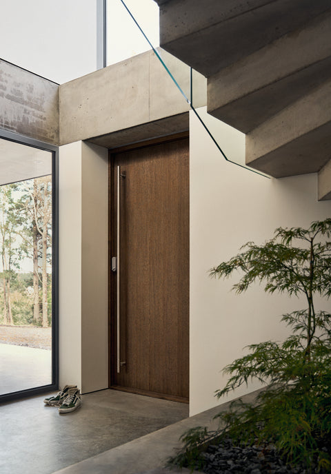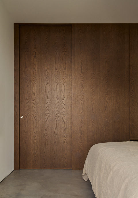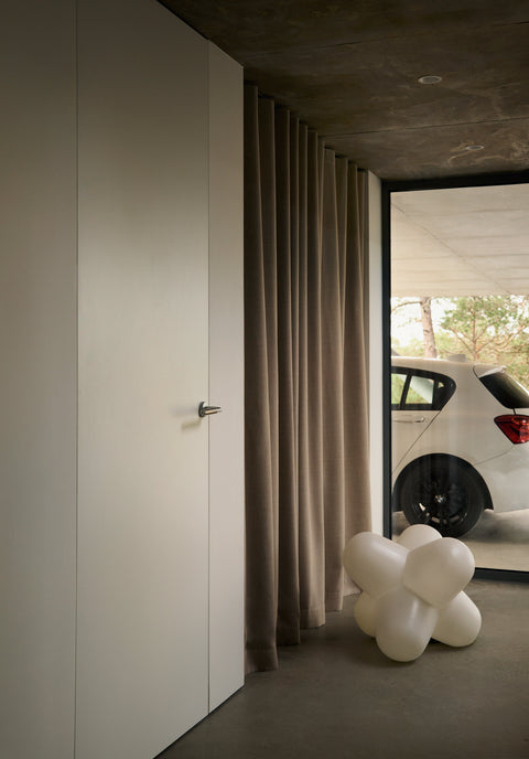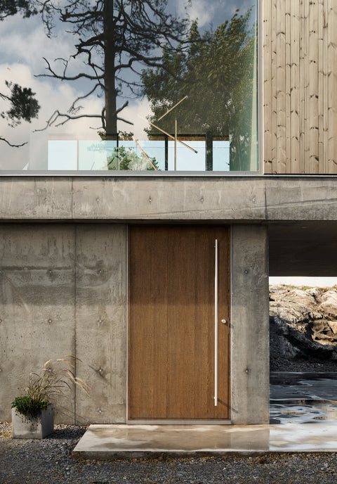 I Pine Edge Villa är inget lämnat åt slumpen. För Evelina och Jonas var dörrarna från Njord en avgörande del av helhetsupplevelsen. "Det krävs en otrolig precision för att få till sådana här dörrblad." Att kunna integrera karmarna i väggen var en förutsättning för att den arkitektoniska visionen skulle hålla ihop. Paret lyfter särskilt fram samarbetet med Njord, som var en aktiv partner under projekteringen och bidrog med lösningar kring materialmöten och detaljer.