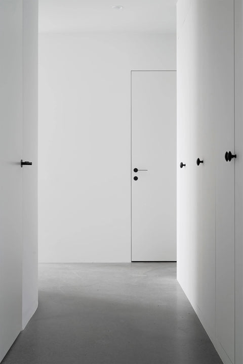Det går att välja finish på låshus och slutbleck - antingen rostfritt, svart eller vitt. Vid val av dörrkarm k02 eller k03 går det även att välja finish på de dolda gångjärnen - antingen rostfritt, svart eller vitt.