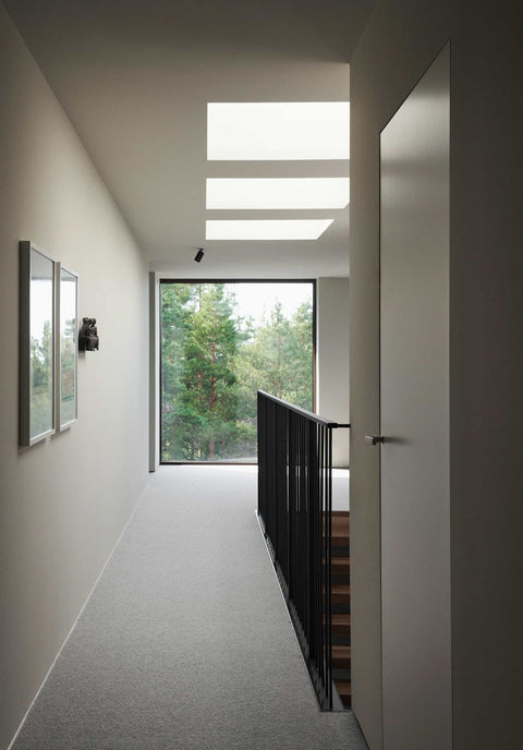 One of the most unique aspects of Villa H is the attention to detail, especially in the choice of doors. The Högström family chose Njord doors for their quality, flexibility, and affordability. The doors have concealed frames and minimalist handles, allowing them to blend into the walls and beautiful walnut panels. On the entrance level, they chose walnut doors matching the walls, while upstairs doors are painted the same colour as walls and ceilings. The sliding doors, reaching an impressive 2.9 meters high and 1.2 meters wide, provide a sense of solid quality and weight.
