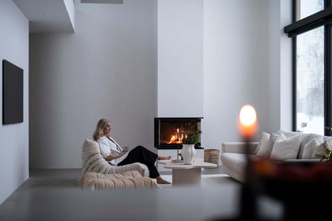 Emmy Nordmark, together with her partner Mattias Bergqvist and their son Bosse, has built an architect-designed split-level house on a rare lakeside plot in Boden, Norrbotten. Emmy, who is a professional handball player and entrepreneur, has a great passion for interior design. After spending many hours building houses in The Sims during her youth, the dream of the perfect home finally became a reality.