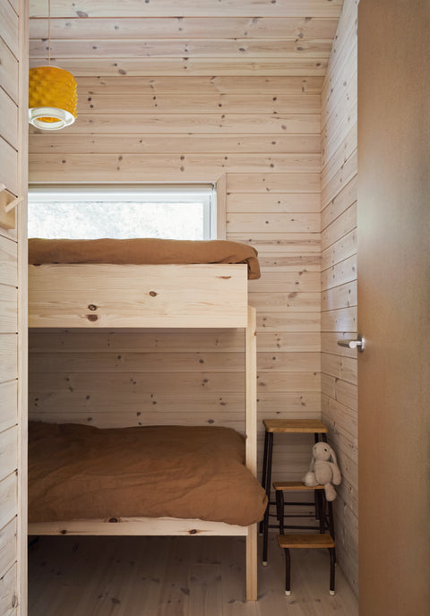 Mattias has built the bunk beds himself. The wooden decks, on the other hand, were built by their creative and skilled carpenter Lennart. This year, Lennart has also built a pergola over the newly installed outdoor kitchen. "The outdoor kitchen has given us even more space and we usually cook there when there are many of us here. We hang out with neighbors and invite friends over, so it's a good social space to have outside when the weather permits".