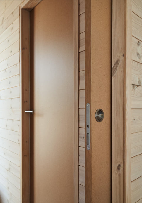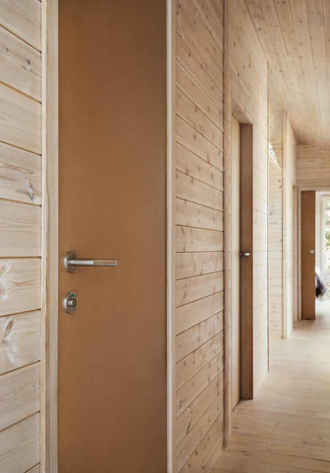 "We opted for solid interior doors from Njord in the MDF variant, one of which became a sliding door. Our holiday home is not that big, so the massive inner doors with MDF surface layers really fulfill their function. Where both their insulating ability and the architectural idea of opening up and closing up contribute to the house feeling much more spacious. Above all, they are great.”
