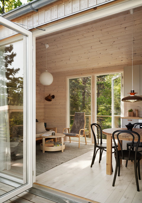 There used to be an older holiday home from Sofia's grandparents on the plot, and before Sofia and Mattias met, she had used the cottage herself for many years. With the new family situation, a place was needed where everyone could be together and Djurö became a logical solution. The old cabin was of an older standard and poorly planned, so a new house felt inevitable. They found Enkelrum that felt just right for them, above all because they wanted to collaborate with a company that delivered turnkey houses. Enkelrum were also very accessible and easy to work with.